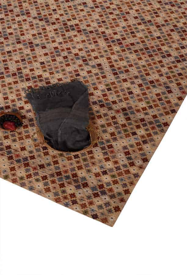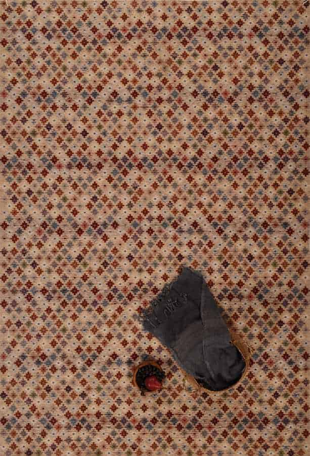 שטיח אריגה עשוי מסיבי פוליאסטר בשילוב אקרילן וכותנה.