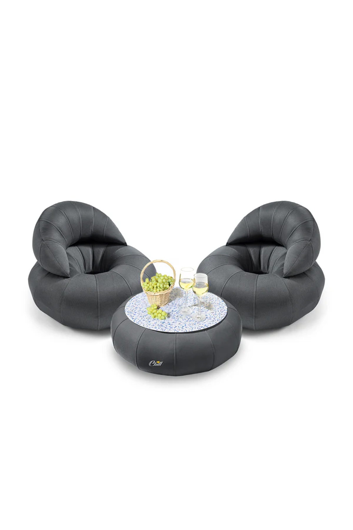 חבילת כורסאות קרואסון עם שולחן דונאט XL ומגש לבחירה אפור כהה