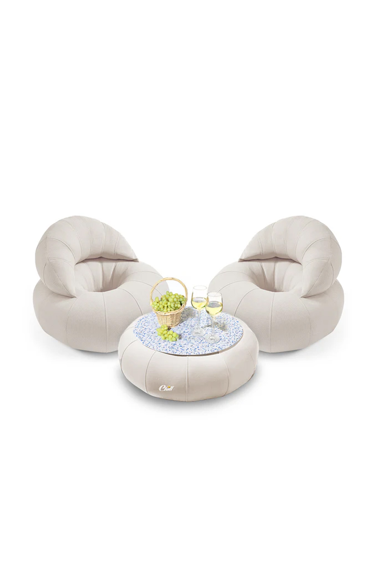 חבילת כורסאות קרואסון עם שולחן דונאט XL ומגש לבחירה לבן